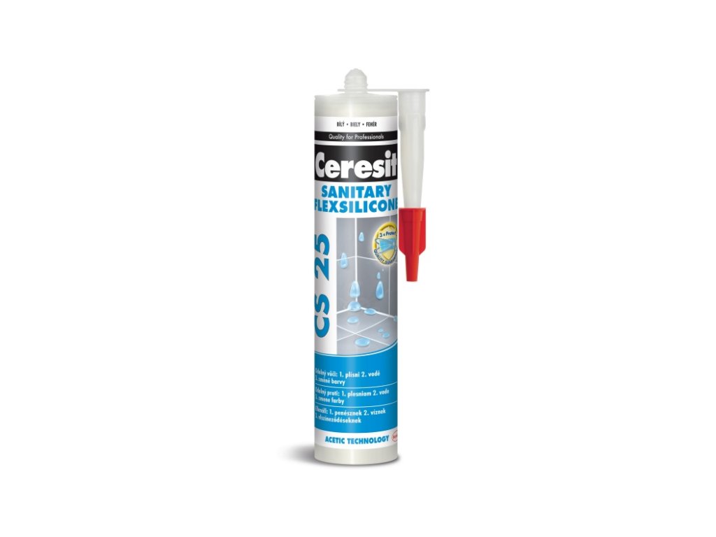 Sanitární silikon Ceresit CS 25 SANITARY je určen pro vyplnění dilatačních a spojovacích spár mezi keramickými obklady a dlažbami v rozích nebo ve styku stěn, podlah a k usazování zařizovacích předmětů v sanitární oblasti. Je určen k vyplňování spár tam, kde běžné spárovací hmoty vykazují trhliny a praskliny. Díky trvalé elasticitě a odolnosti proti vodě je vhodný do oblastí trvale zatížených vlhkostí, jako např.: kuchyně, sprchy, koupelny, toalety, balkóny, terasy apod. Sanitární silikon Ceresit CS 25 SANITARY s recepturou MicroProtect obsahuje v porovnání s dosud standardním silikonům trojnásobné množství protiplísňových přísad a díky efektu Aquastatik zaručuje, že se na povrchu cementových spár nemůže držet voda, čímž poskytuje dlouhodobou ochranu proti vzniku plísní a jejich působení. Spáry tak zůstávají čisté a zdraví neškodné. Materiál má vynikající přídržnost k suchým i nesavým podkladům jako sklo, keramika, porcelán, pórovina, email apod. Není vhodný pro použití v nádržích na pitnou vodu a pro lepení akvárií, zrcadel a kovů podléhajících korozi (jako olovo, zinek, měď, železo).