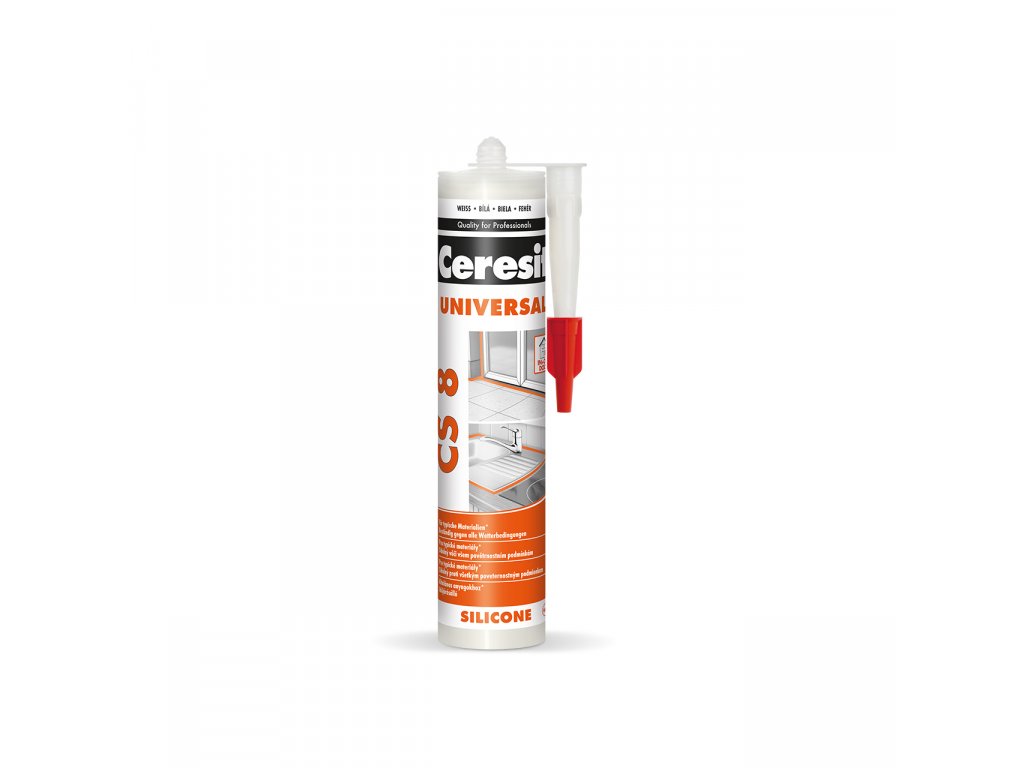 Ceresit CS 8 je jednosložkový acetoxy silikonový tmel k univerzálnímu použití v interiéru i exteriéru. Tmel vytvrzuje vzdušnou vlhkostí za pokojové teploty a vytváří flexibilní a odolnou spáru. CS 8 má dobrou přídržnost ke sklu, keramickým obkladům, glazovaným a lakovaným povrchům, smaltu, eloxovanému hliníku apod. a to bez nutnosti penetrace. Lze ho použít na vytmelování skleněných výplní, osazování sanitární techniky, jako těsnění pro čluny, lodě, automobily, přívěsy apod. Vytvrzený tmel je odolný vůči běžným čisticím prostředkům a mnoha chemikáliím a má výbornou dlouhodobou ochranu proti povětrnostním vlivům (UV záření, déšť, ozón, sůl apod.). Nepoužívejte CS 8 pro lepení zrcadel a akvárií a k tmelení spár obkladů a dlažby z přírodního kamene (např. mramor, granit). V tomto případě zvolte speciální silikon na přírodní kámen. Nepoužívejte CS 8 na polyethylen a PTFE (Teflon®).